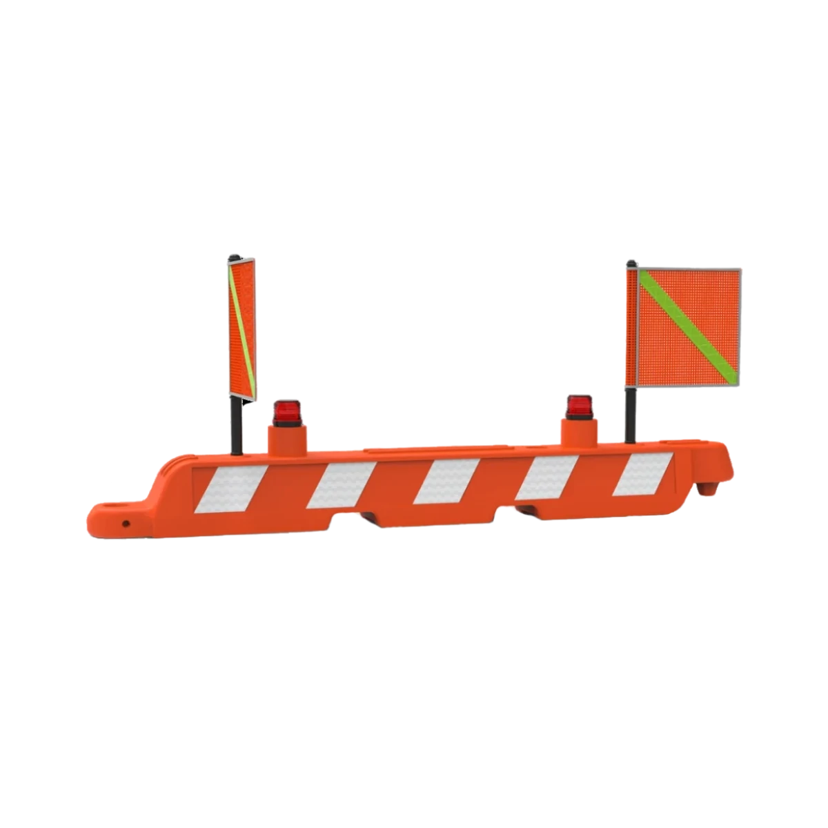 - La barrera puede llevar lastre de agua o arena; aumentando su estabilidad, cuenta con puente inferior para el libre paso de agua o ser manipulada por montacargas