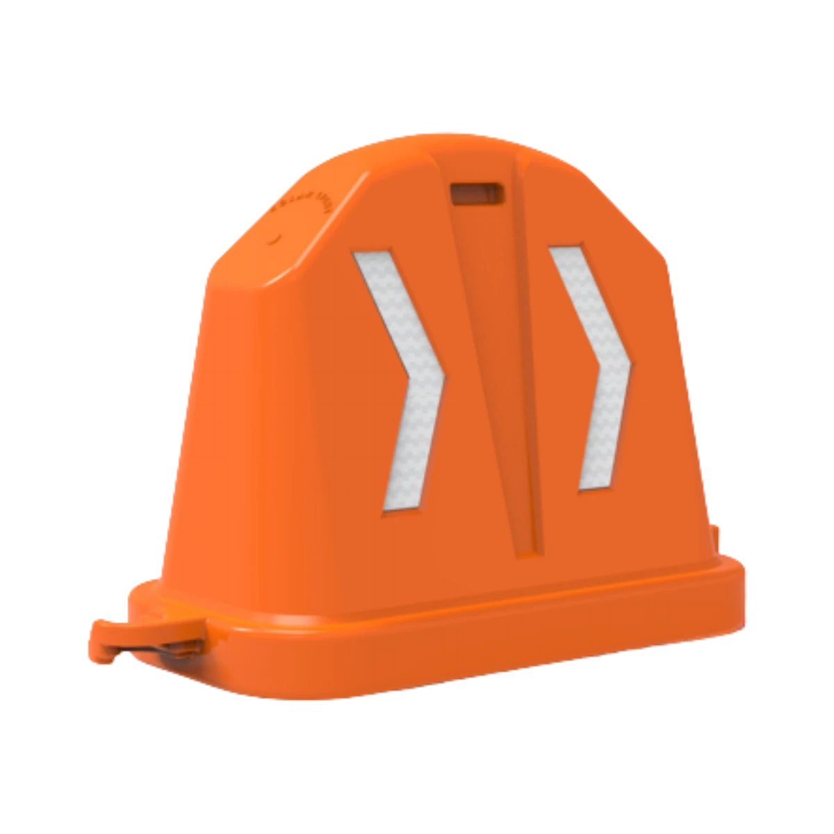 Fabricada con polímero de alta resistencia, su estructura robusta resiste impactos, exposición prolongada al sol y variaciones climáticas severas. El material cuenta con protección contra rayos UV, lo que prolonga su durabilidad y conserva su color naranja de alta visibilidad por más tiempo. Además, cada barrera incorpora chevrones moldeados en ambas caras que pueden ser equipados con reflejante blanco para mejorar la visibilidad nocturna, un detalle clave para contextos de poca iluminación.