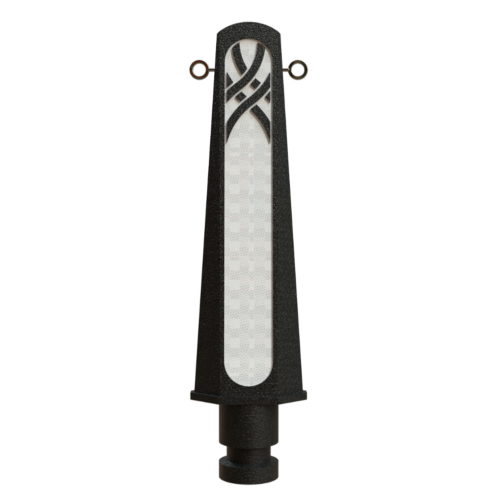 Este modelo, conocido también como Bolardo Prosperidad, integra funcionalidad y estética en un solo elemento. El cuerpo está fabricado en polímero resistente y reforzado con un núcleo tubular de acero, lo que le confiere resistencia frente a impactos y asegura un desempeño confiable incluso en condiciones de uso intensivo.