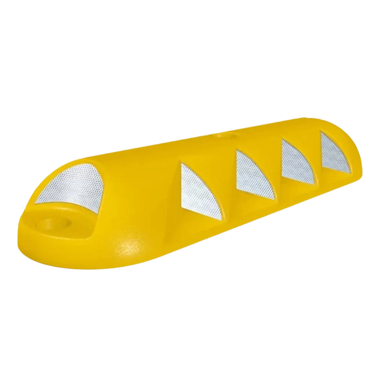 Su forma de tronco piramidal hace que el Canalizador Oruga sea tanto llamativo como funcional. La altura óptima del canalizador asegura que no dañe los neumáticos de los vehículos y carece de aristas peligrosas, brindando tranquilidad a conductores y ciclistas por igual.