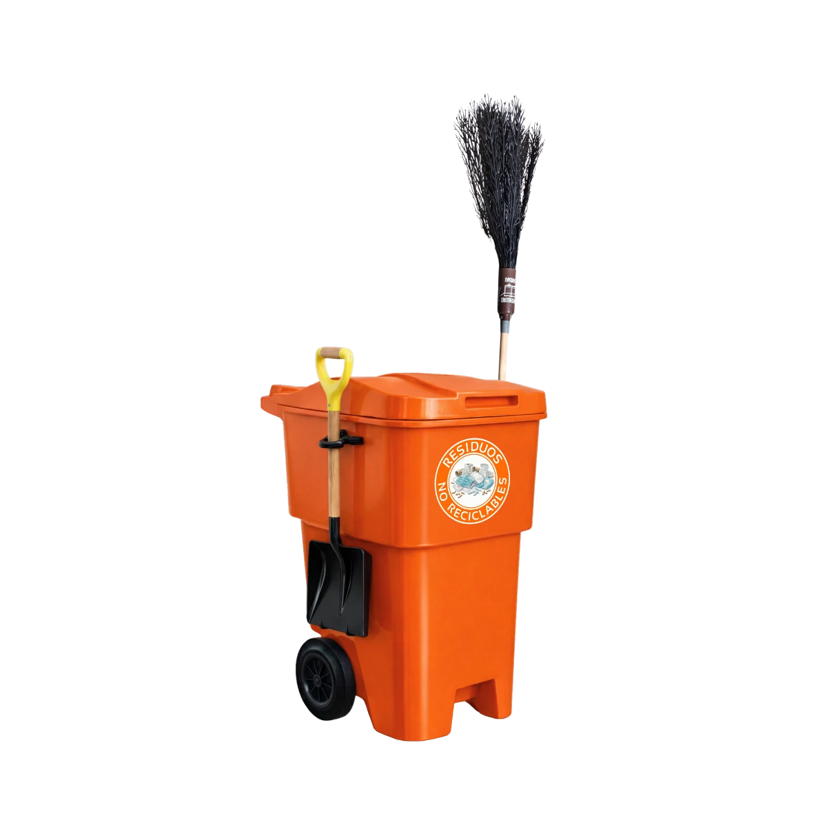El diseño del carro también favorece la organización del trabajo diario. El sistema incluye pala y escoba, herramientas esenciales para realizar labores de barrido y recolección de residuos en áreas públicas. Al integrar estos elementos en un mismo equipo, el personal puede iniciar sus tareas de forma inmediata y mantener todo lo necesario al alcance durante la jornada.