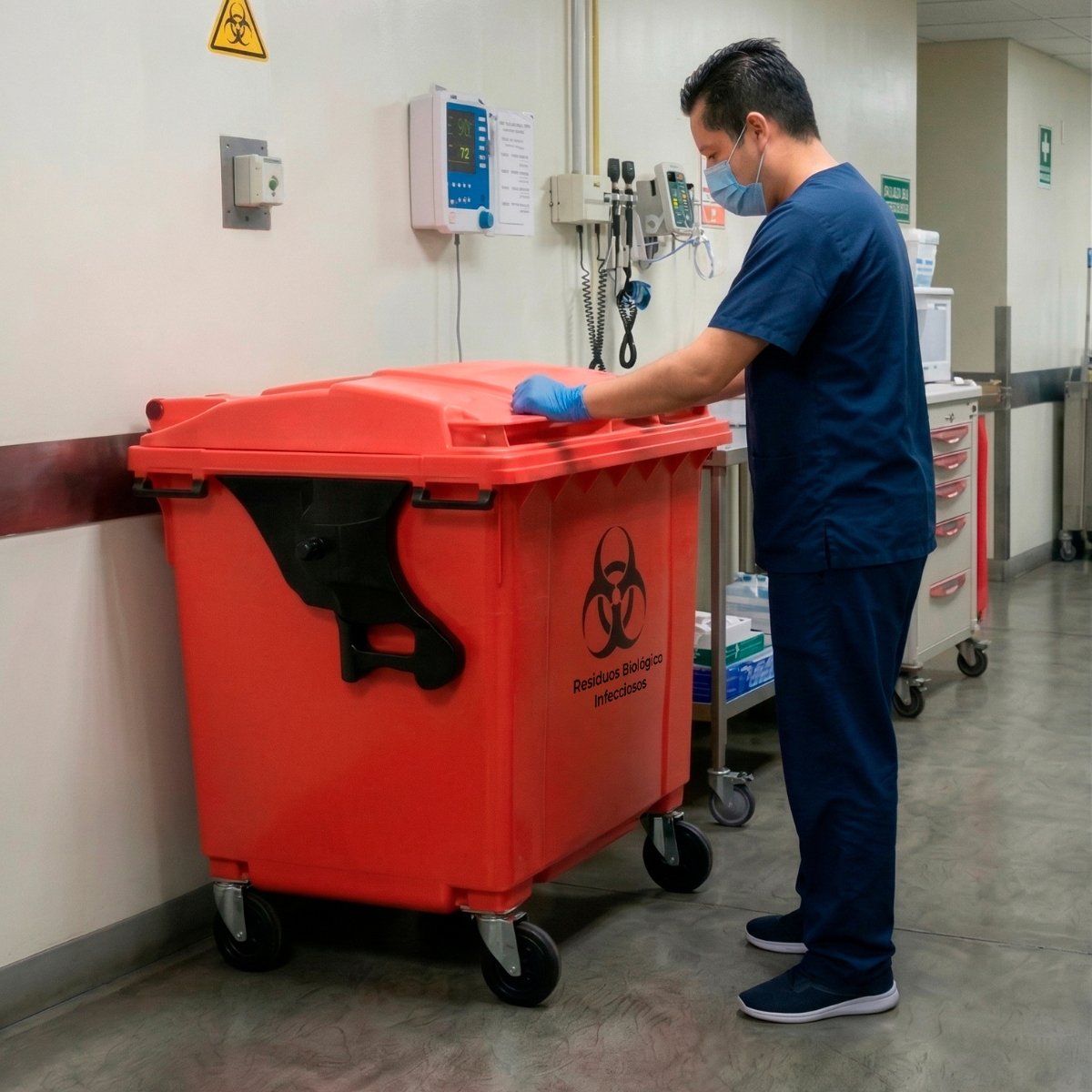 El Contenedor de residuos peligrosos cumple con normas y estándares internacionales para operar con sistemas automatizados de recolección de residuos. Además, su estructura sin bordes ni impurezas garantiza un vaciado rápido y completo, reduciendo el tiempo de exposición a residuos peligrosos y mejorando la higiene en su manejo.