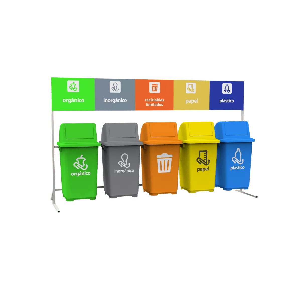 Disponible en una gama de colores que incluye verde, azul, amarillo, gris, rojo y naranja, facilita la identificación adecuada de los residuos. Además, puede ser rotulada con el tipo de material a depositar o con el logotipo de la institución para reforzar su identidad visual.