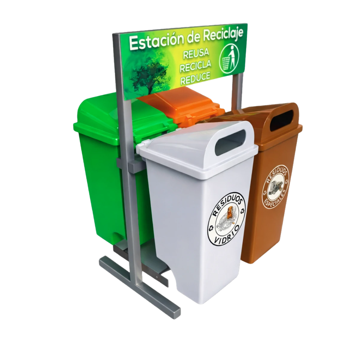 Transforma cualquier espacio en un punto clave para el reciclaje y la sostenibilidad con nuestra Estación de reciclaje ECOL-560-RT2, conformada por cuatro contenedores, y diseñada para combinar funcionalidad, durabilidad y estética. Ideal para parques, escuelas, estacionamientos y más, es la herramienta perfecta para fomentar la cultura del reciclaje en cualquier entorno.