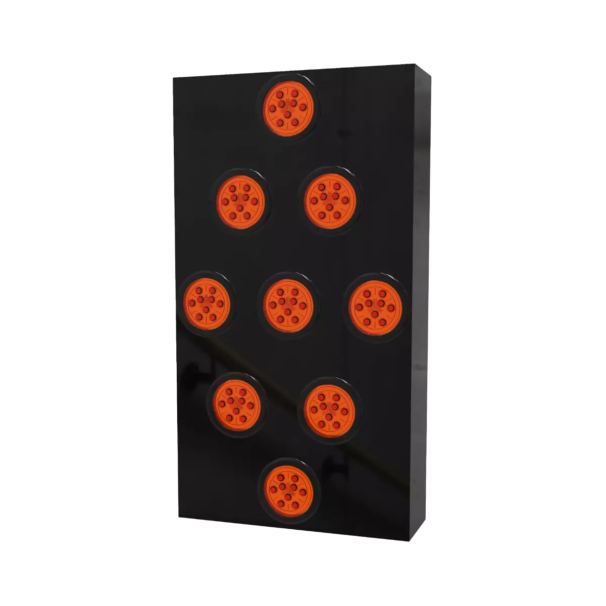 - Iluminación: 9 clusters leds ultrabrillantes rojos o ámbar de programación independiente con mica óptica a 360º.
