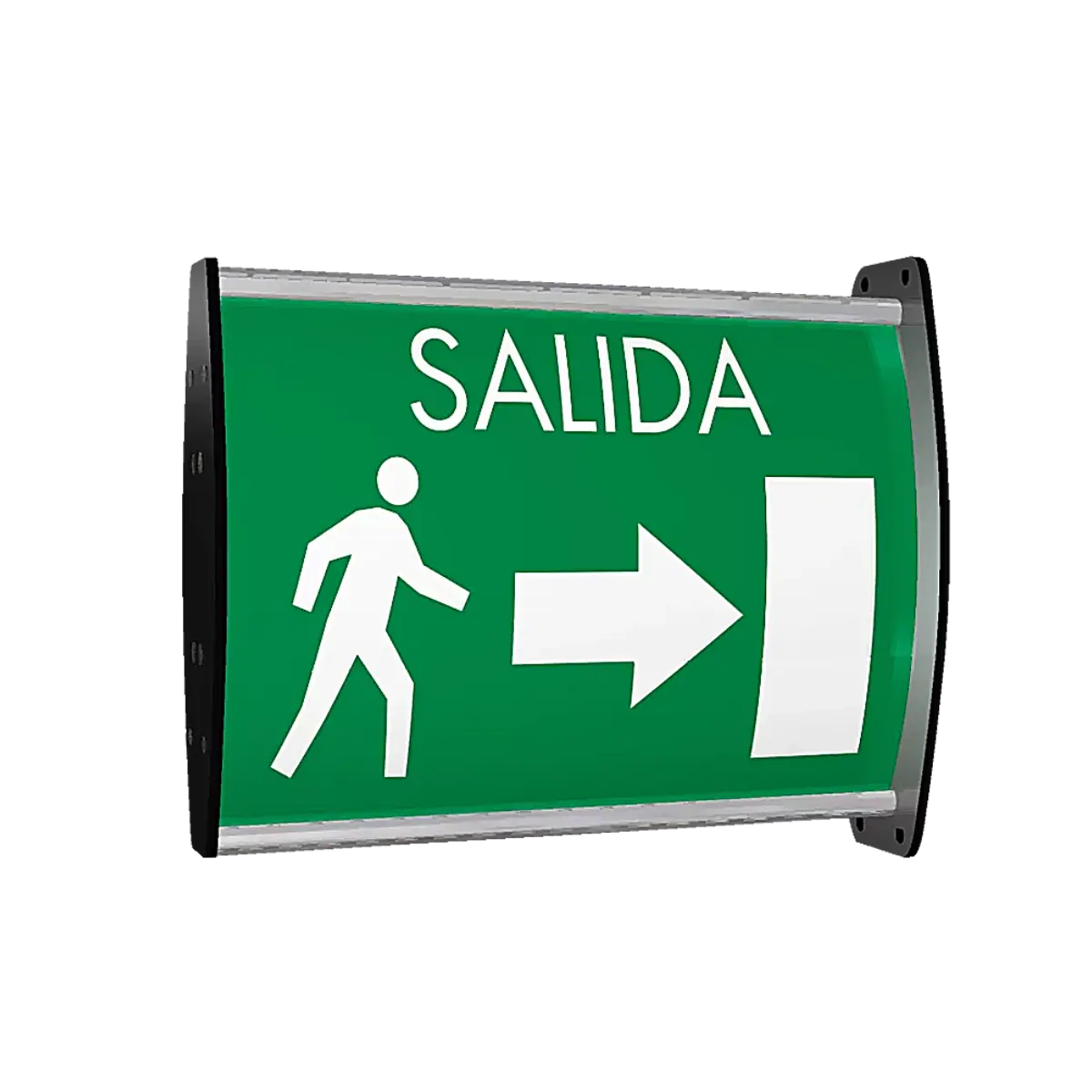 Nuestro letrero salida de emergencia cuenta con base plástica para fijación en superficies planas. Incluye película antirreflejante. Está fabricado en perfil de aluminio natural, anodizado, satinado, curvo extruido, garantizando la mayor durabilidad y la mejor imagen corporativa.