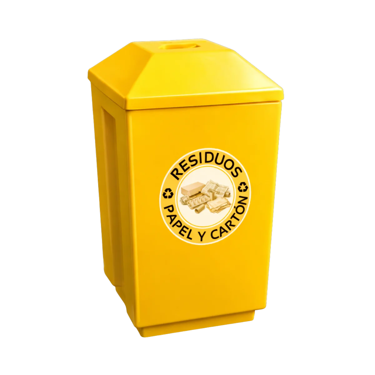Su estructura está fabricada en polímero de alta resistencia, lo que permite enfrentar el desgaste propio de calles, plazas, accesos y zonas peatonales. Este material ayuda a conservar la forma y el funcionamiento del contenedor con el paso del tiempo, reduciendo la necesidad de reemplazos frecuentes y haciendo más eficiente la inversión.