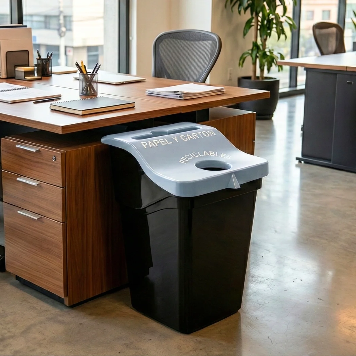 Fabricadas íntegramente en polietileno de media densidad, estas papeleras están diseñadas para resistir el uso diario y garantizar una larga vida útil. Su contenedor cónico con un diseño actual no solo destaca por su estética, sino también por su funcionalidad, convirtiéndolas en la solución perfecta para oficinas, escuelas, espacios públicos y cualquier entorno donde la gestión de residuos sea esencial.
