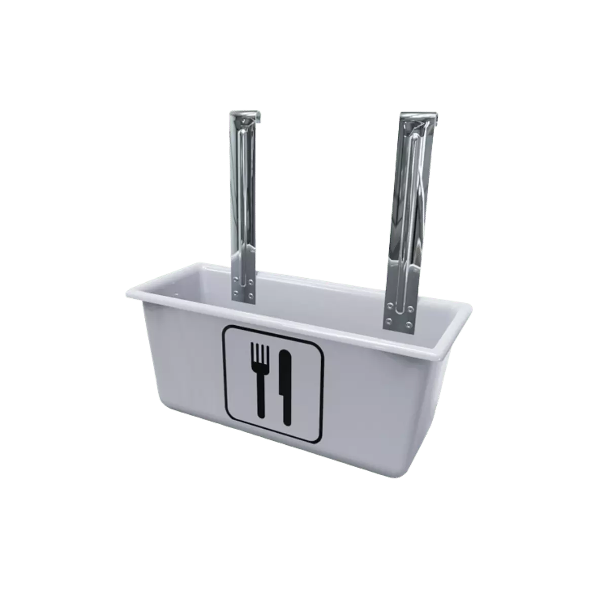 El porta cubiertos de plástico es un contenedor colgante ideal para utensilios livianos, tiene el tamaño ideal para colocarse en carritos de servicio o mesas de cocina.